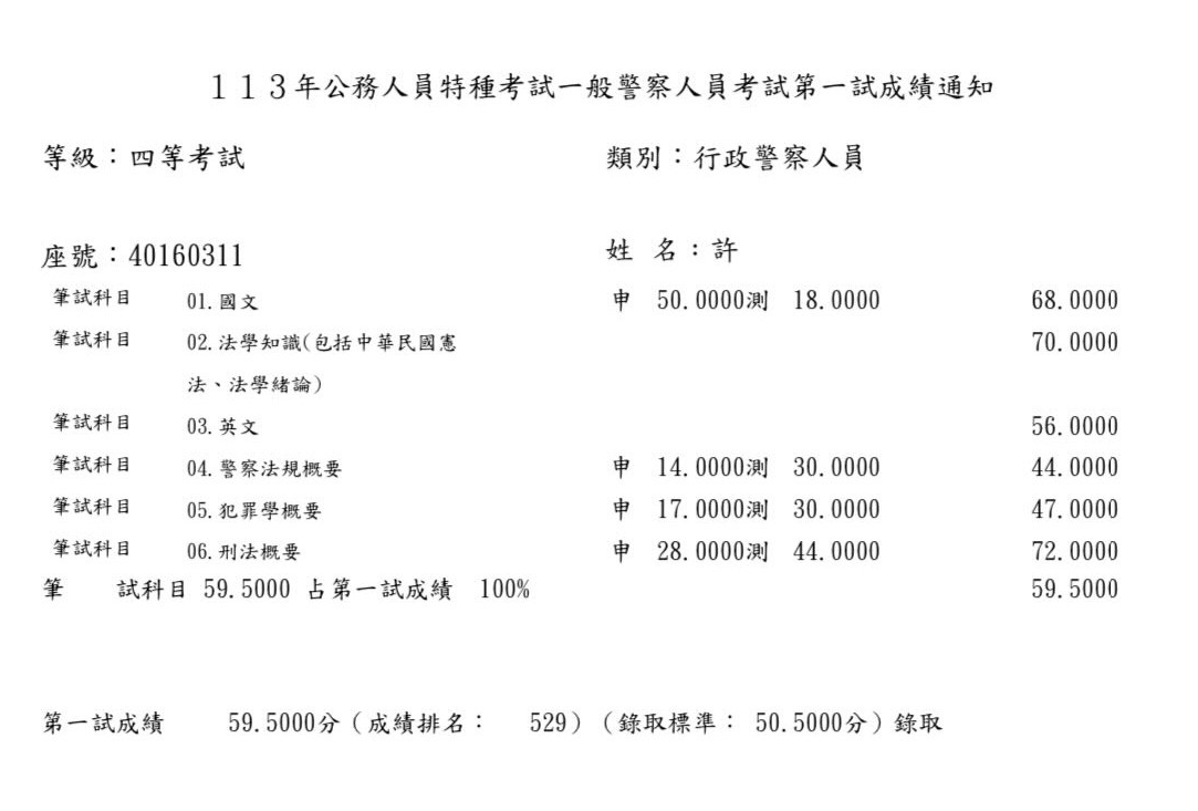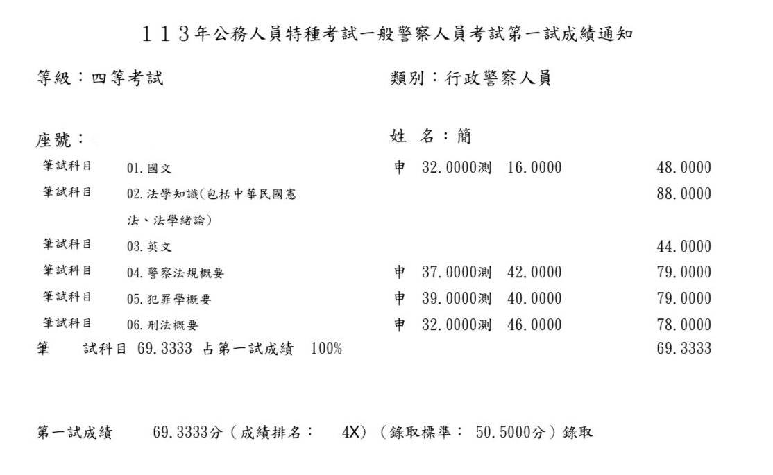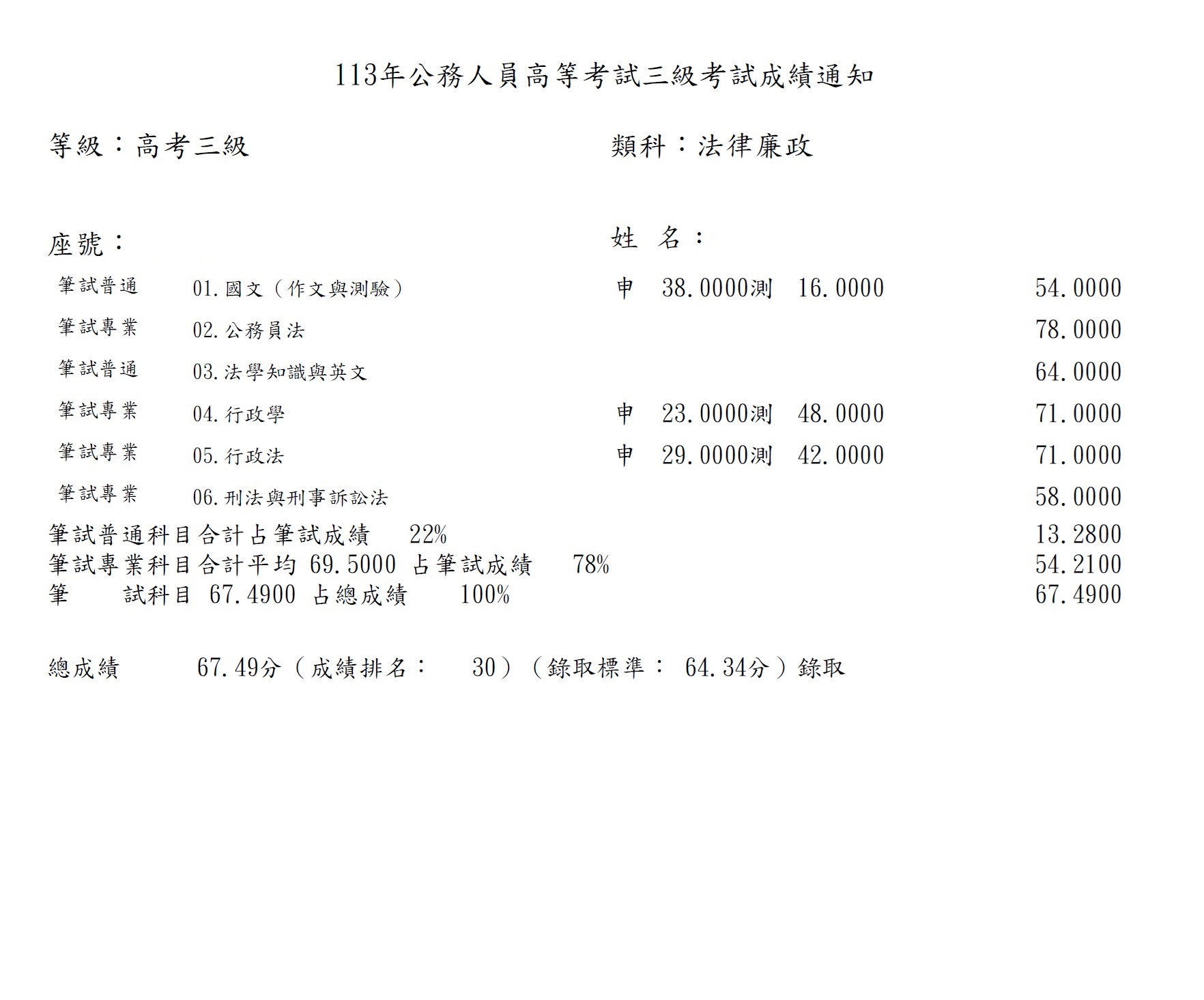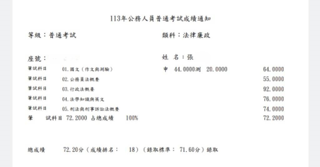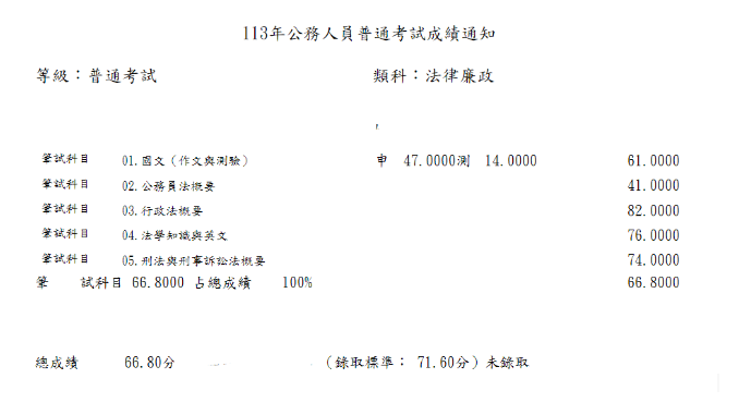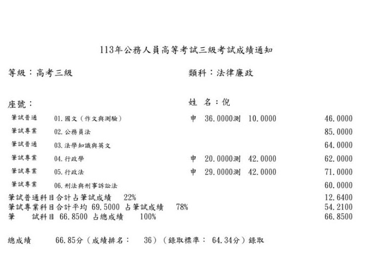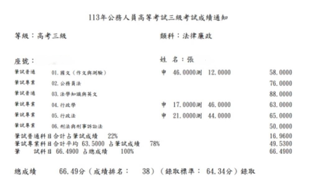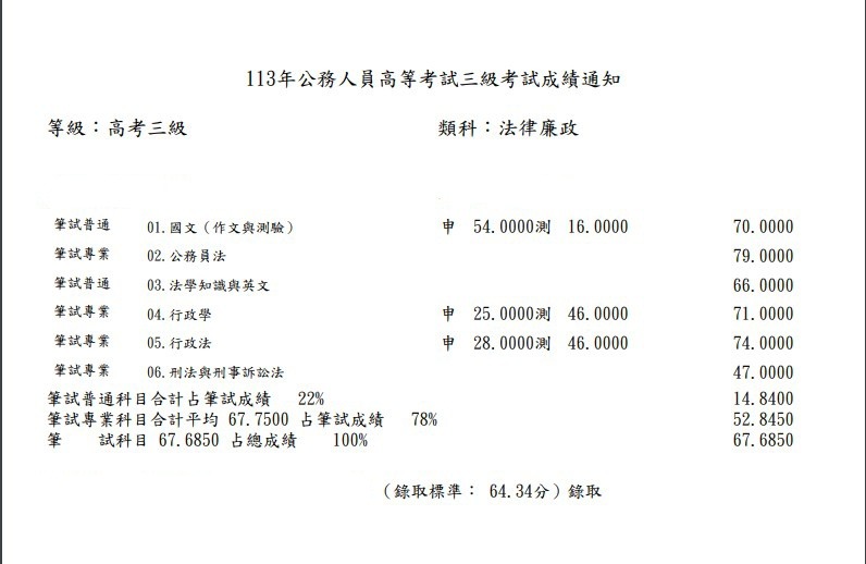 自認法律學的並不是特別好,但除了行政學,專業科目都有修過,所以沒考慮全科函授。