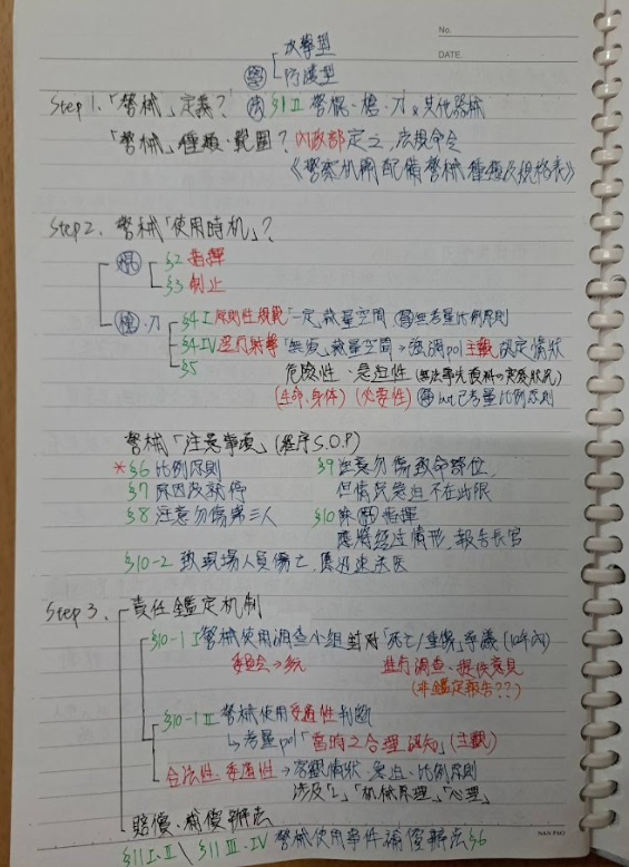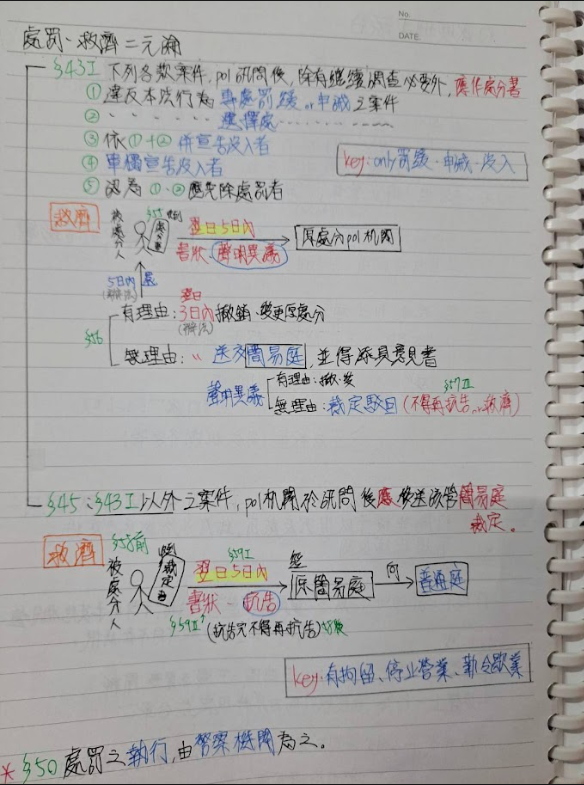 正課是有補歌神補習班,後來購買思法人總複習班,李瑜老師有特別強調要注意的重點,不過這科真的很靠領悟的能力及對法條的熟悉度,每個法規條例都很重要都要清楚,不好記但至少要懂,唸完一段或背完馬上寫題目,我嗑完了兩本警察法規不同老師的書籍,最後再搭配總複習班李瑜老師的提點,把需要注意的地方再加強。