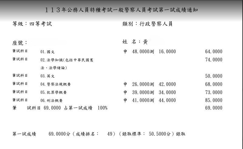 我從今年的1月中旬左右開始準備,剛開始就選擇自讀,爬文買書回家自己準備以及購買阿摩VIP,早上會選擇刑法或犯罪學比較需要耗費精神去記憶的科目,下午則針對警察法規,在4月時經朋友推薦購買思法人總複習班,針對專業科目加強,真的是靠總複習班把重點聚焦,前面自讀很容易抓不到重點而且會花費很多心力去搞懂,上了總複習後才覺得蠻後悔沒有一開始報名正課班,可以直接針對重點熟讀,不需要再花費時間在冷門的部分,我選擇了一個痛苦的方式,不然分數跟名次應該會再進步不少,說真的是靠總複習班將我的分數衝上來。