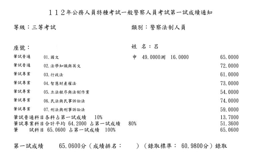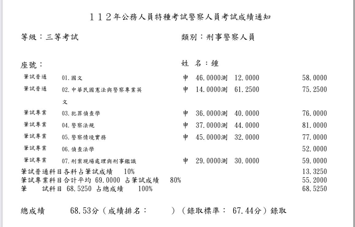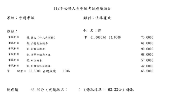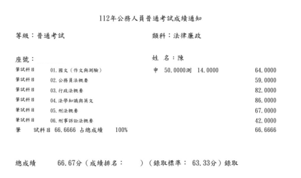 「 一定要付出努力,這樣運氣才會幫你一把 」,有時候努力不一定會有成果,不代表你不認真或沒能力,只是時機還沒到,前後我投入考試的成本和時間也比國父革命還多次了,甚至在今年也去學習新東⻄,為自己備考留條後路,也沒想到今年榜單居然出現自己,當你看到榜單沒你時會難過的哭代表你很努力了,看著每次成績單的分數離上榜分數越來越近,也代表你一直在成長,加油 ! 上榜離你不遠了 !