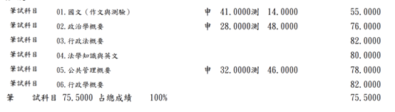 行政學和行政法 : 行政學使用百分百,也可自行上網抓考古題,行政法就過往練過的考古題,要注意有些部分會因為條文修改,導致答案有修正的空間,可以參酌考選部的解答或是阿摩。