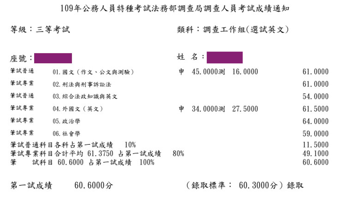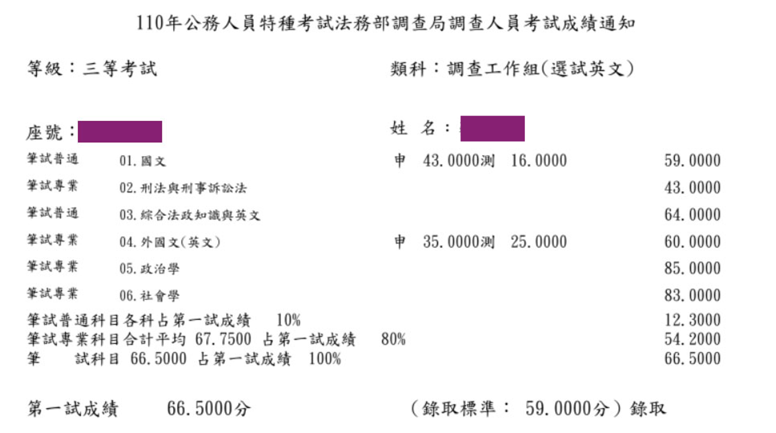 思法人考取心得分享 110調查特考調查工作組(英文) 備考心得