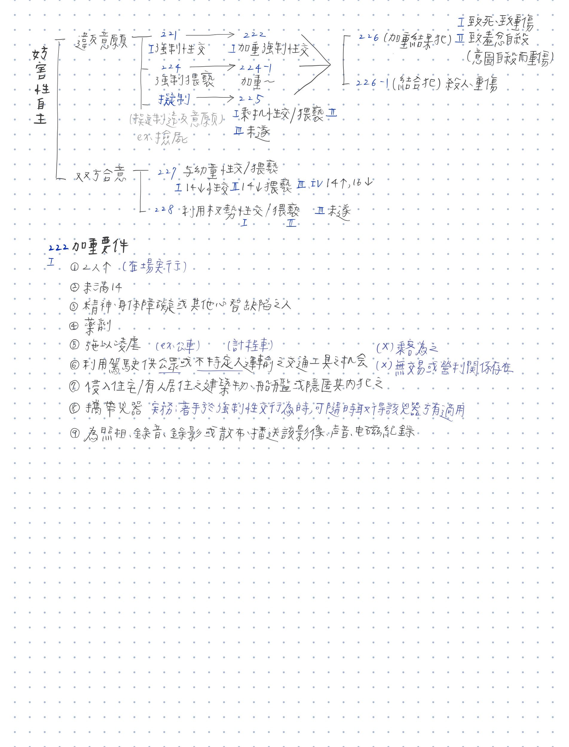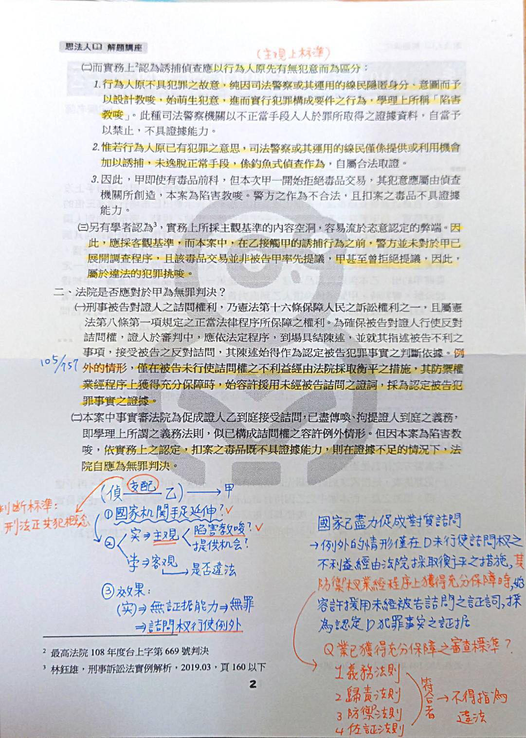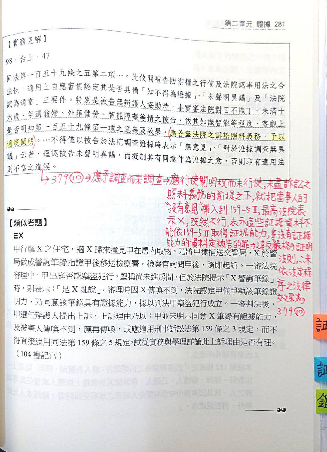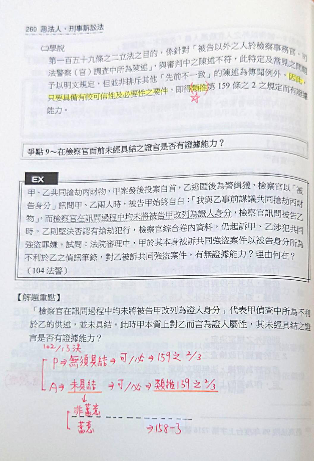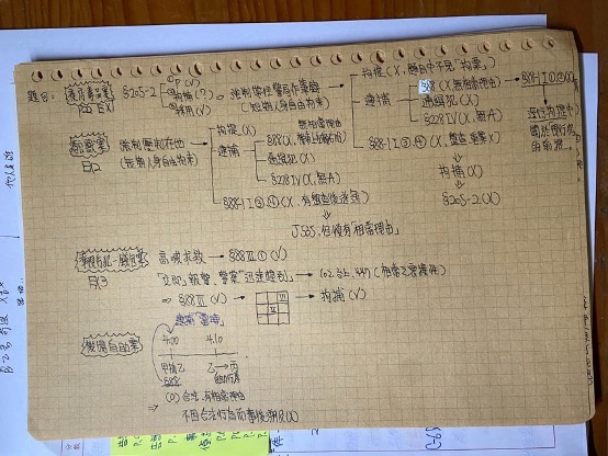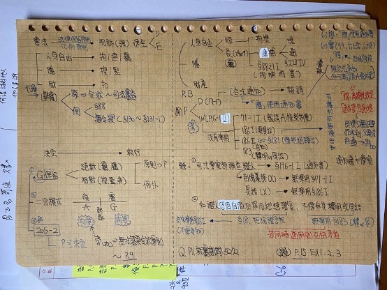刑事訴訟法則是我一直非常喜歡的科目,我特別喜歡程序性的流程,並且將自己帶入檢察官、警察、辯護人的角色中去思考法條,應用法條真的很開心XD。同上述,我也會在上調查證據、強制處分完結後,用空白紙將重點進行沙盤推演,寫出關鍵釋字、法條。