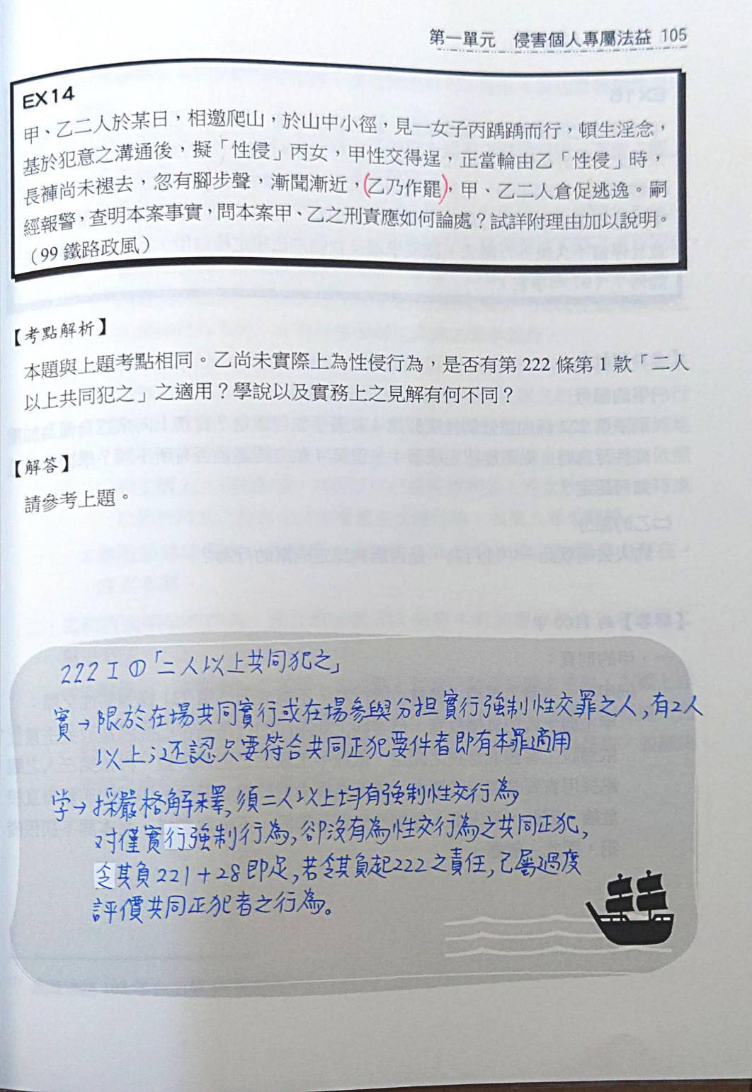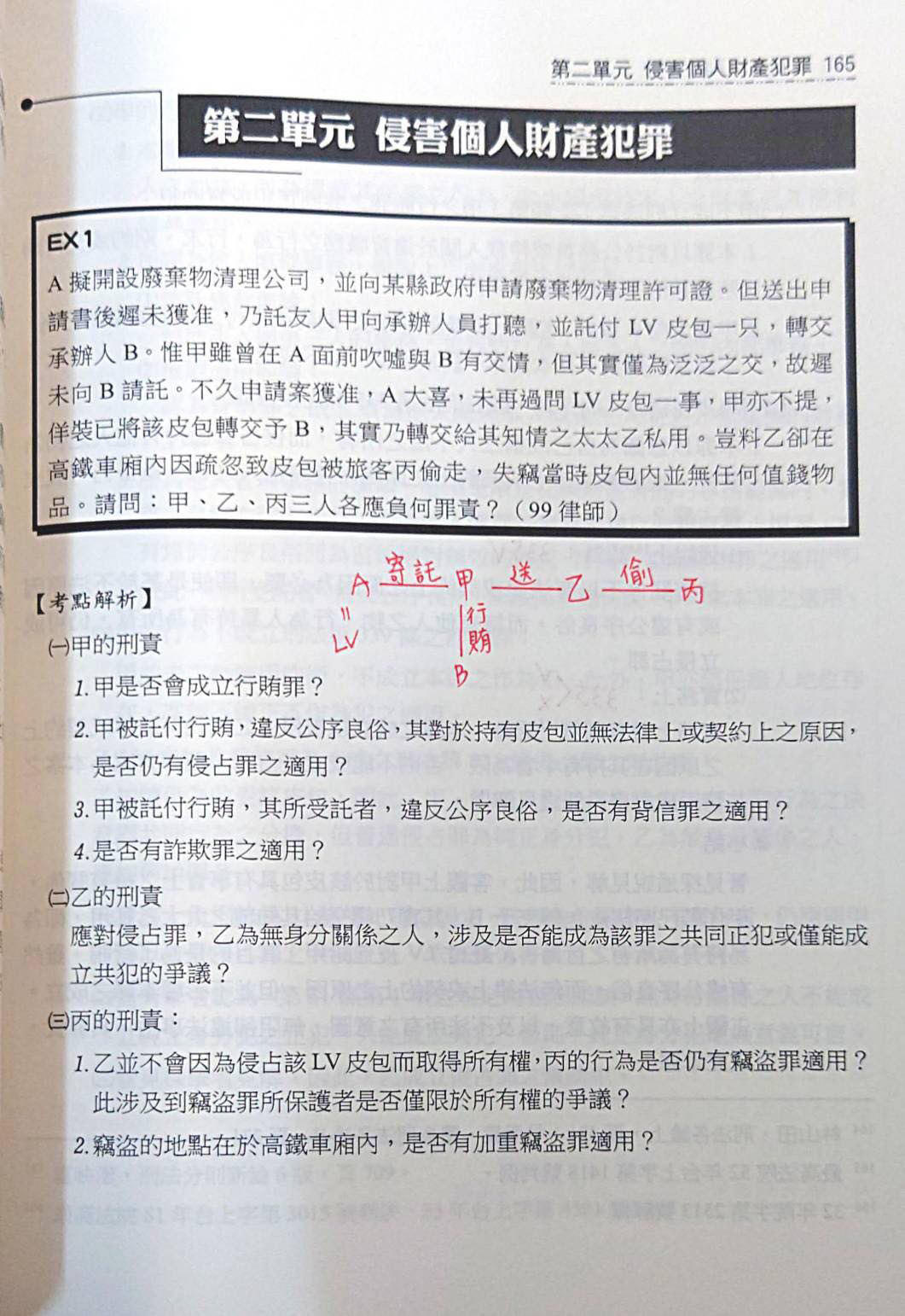 ★考前一個月,我會將紀綱老師刑法總則題庫書、分則題庫書、刑事訴訟法題庫書,從頭到尾刷過至少一輪。相信我,在遮住答案情況下,自己試著做一遍,對爭點的把握、答題的架構、還有必須一定要回答的關鍵字(關鍵理論)一定會有長足的進步,可以一試喔。