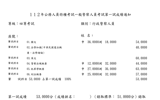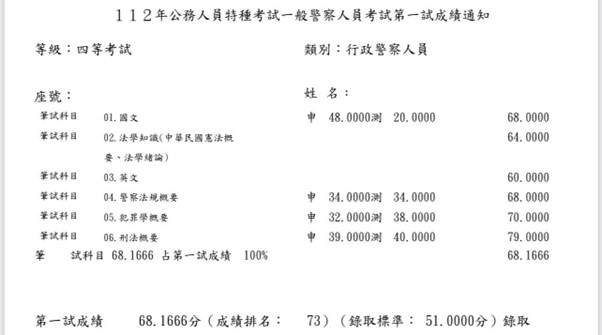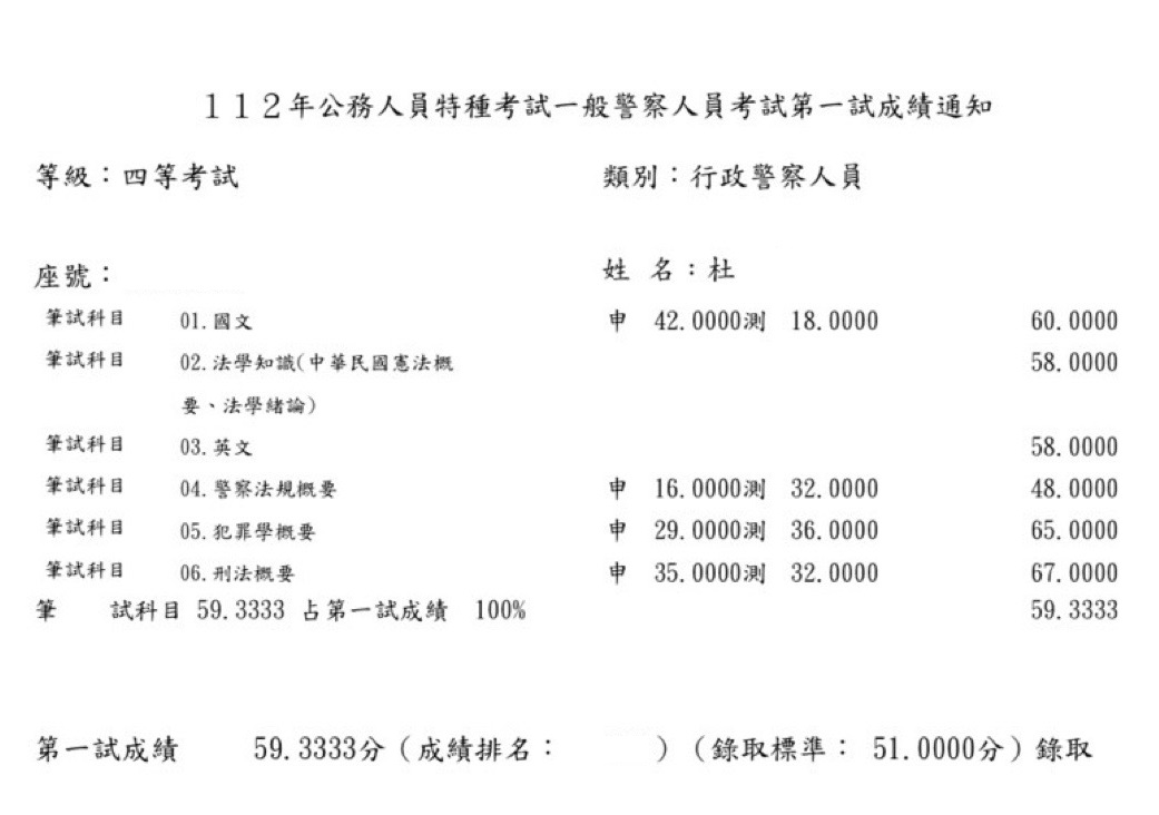 (2)這科是我準備時間最少的科目,因為範圍龐大所以我只有將補習班的筆記複習過一遍就到考試時間了,如果準備時間再充裕點應該能再更高分。