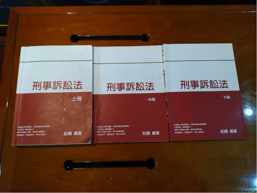 刑事訴訟法(下稱「刑訴」)對於初學者來說應該會覺得非常難,民訴或刑訴都超難。因此,正課部分有些地方我不只看一遍,以確實導正觀念,我認為這證明了「函授」的好處。除了紀綱老師的刑事訴訟法正課課本、題庫班以外,我自己還有購買二手書林鈺雄老師刑事訴訟法(8版)上下冊、刑事訴訟法實例解析(2版),如今分別都已經進入到第10版、第4版。此外,還有購買王兆鵬老師三人合著的刑事訴訟法上下冊,當作翻閱之用。理由在於,紀綱老師開宗明義有提到是以美派王兆鵬老師及德派林鈺雄老師為主,這是我再去購買參考書的動機。