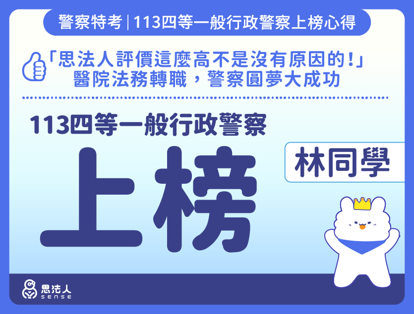 「思法人評價這麼高不是沒有原因的!」 醫院法務轉職,警察圓夢大成功 – 113四等一般行政警察 林同學心得