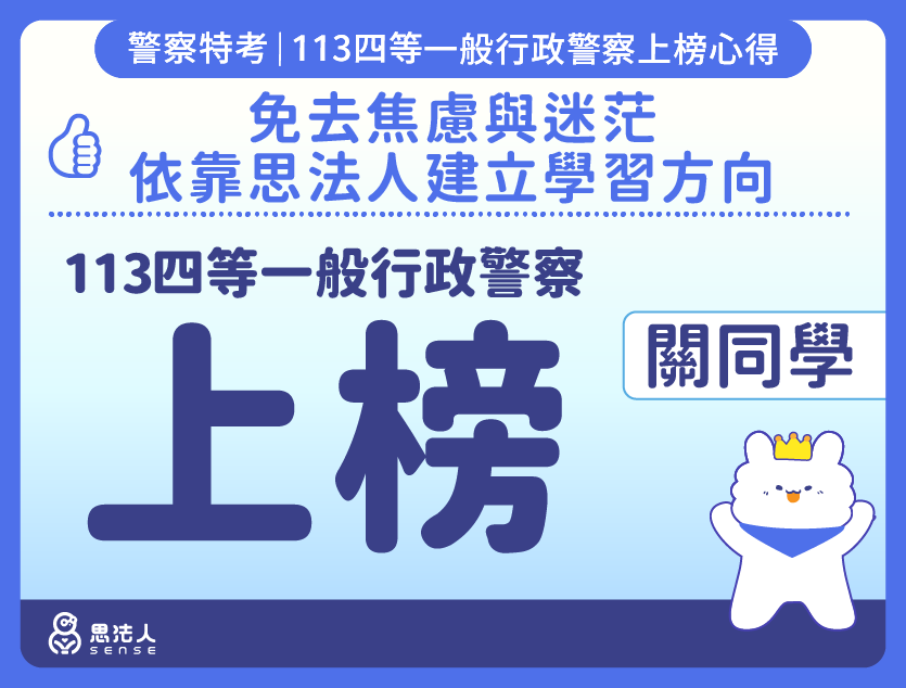 免去焦慮與迷茫 依靠思法人建立學習方向 – 113四等一般行政警察 關同學心得