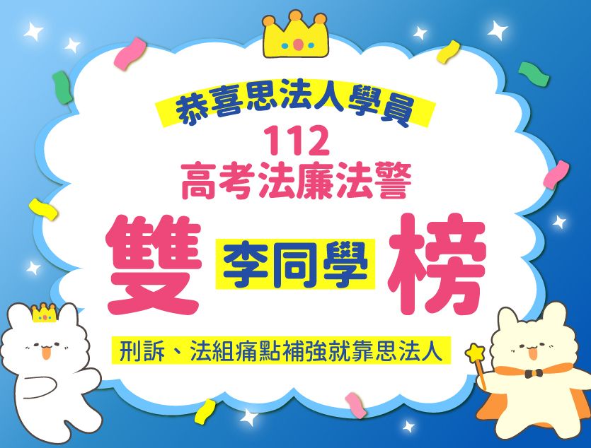 刑訴、法組痛點補強就靠思法人-112高考法廉法警雙榜-李同學