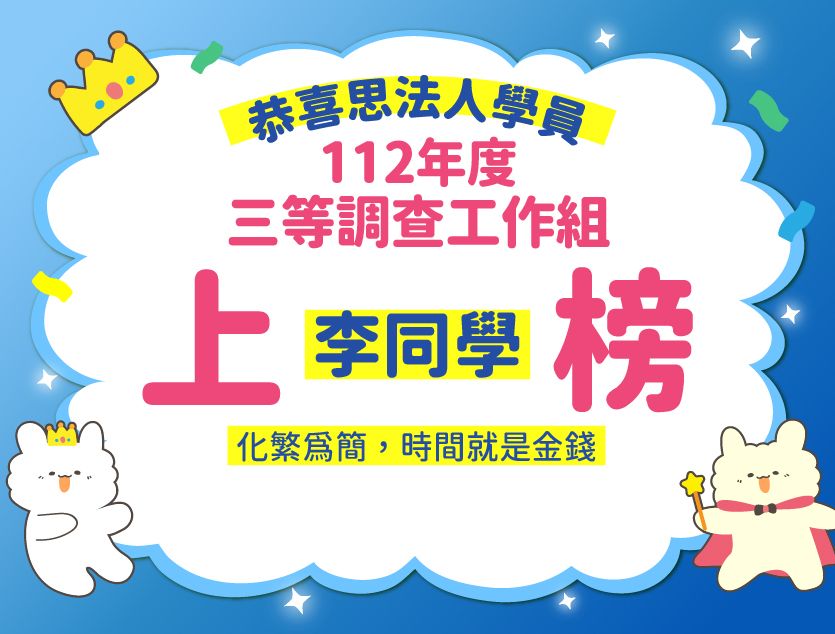 其次,教師個人品行是否端正 ?有沒有與學生一起努力的魄力 ?因為老師的性格是千真萬確會影響學生的。以前的我以為,不管老師們造成自己多少精神痛苦,為了考上都要忍耐,專心把目標放在 ”考上” 這件事;但後來知道了思法人,從接我電話的客服、社群媒體上的小編、門市的工讀生,都彬彬有禮的讓我感受被尊重,也才讓我知道,這種被尊重、被理解的感覺,對於建立能考上的心理素質有多麼重要。可惜其他公職補習班似乎仍停留在打罵教育的激將法上,反而給學生身心造成更壞的影響。