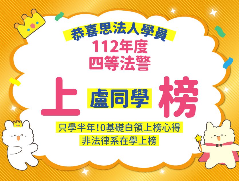 很感謝思法人的大家,特別謝謝,紀綱老師,刑事訴訟只能是紀綱老師,條理清晰、淺顯易懂,雖然我只有考41(感到汗顏)對我這種上班族,加上只學半年 0 基礎的非法律系人來說,紀綱老師的課程真的對我幫助很大。上班偷時間上課上到到一半要暫停忙業務,後又繼續看課程的白領來說,思法人系統,真的非常便利。