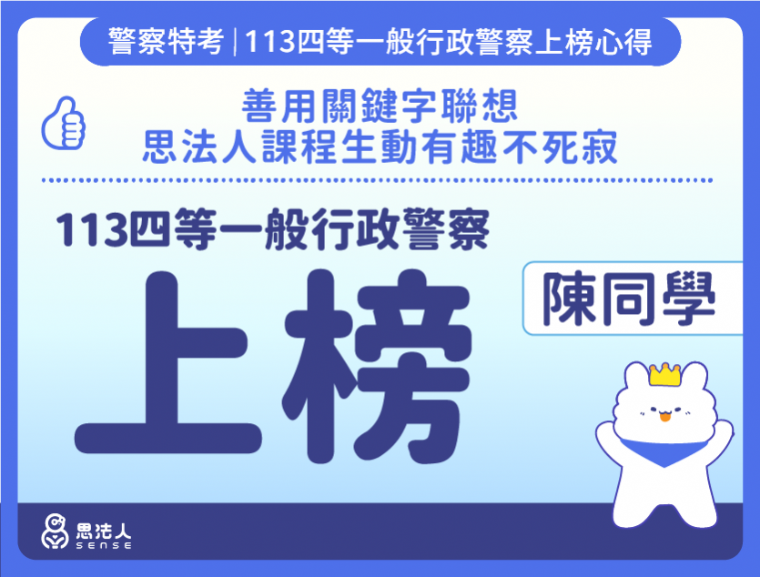 善用關鍵字聯想思法人課程生動有趣不死寂-113四等一般行政警察陳同學心得