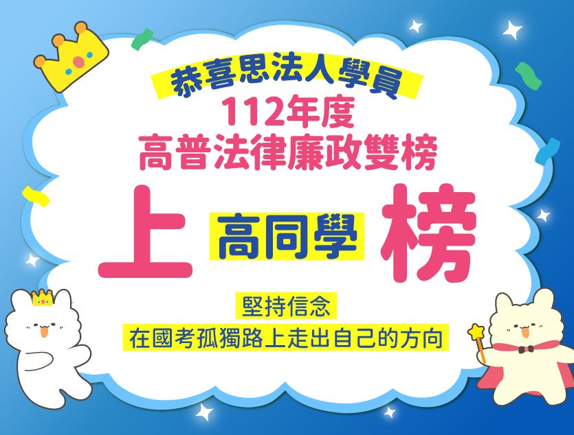 在無數個失眠想放棄的夜晚,都會搜尋上榜文參考,找的文除了法廉之外,不管是準備方式、心態都給我很大的幫助與鼓勵,故決定如果自己上榜了也會寫一篇心得給考生參考,希望看到此篇的人能夠感到激勵,可以堅定目標繼續準備下去,相信有一天一定可以榜上有名,文筆不好敬請見諒。
