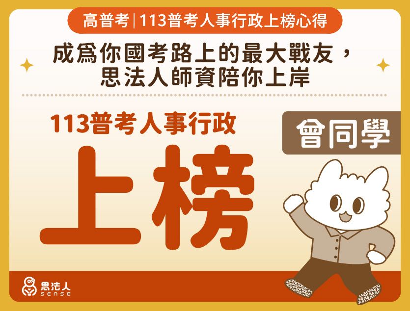 113年高普考都改了考科,讓原本就讀的頭昏腦脹的我更加頭痛,去圖書館和書店翻過相關書籍後,決定加入補習班,來補足原本沒有的基礎,於是在看到思法人網路上的試看影片後選擇思法人,雲端授課的方式對我而言也有較大的自由度。