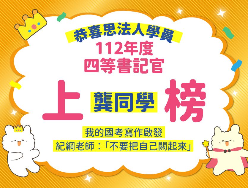 我從大三開始讀法律,大四下學期( 2022 年 2 月 )開始補思法人,由於那時候還沒有確定要考律師司法官或書記官,只是想要考法研所而已,所以就先買刑事法以及民法而已。而在買課程之前,其實也已經在網路上先看過紀綱老師的影片了,第一次看老師的影片就被老師的魅力及邏輯能力深深吸引,因此才決定買思法人。