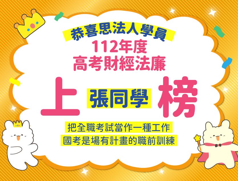 國立大學外文系畢業,大學太貪玩於是畢業後才專心準備考試,原本以為自己對法律有興趣,選擇高考法律廉政為上榜目標,無奈讀了快一年發現自己真的沒有如想像中的熱愛法律,甚至在準備過程中因為實在讀得太痛苦而時常呈現擺爛的狀態,在不斷質疑自己跟反覆確認自己到底喜歡的是什麼後,最後在 111 高考到來的前一個月( 六月 ),下定決心決定轉考財經廉政 ( 感謝家人的信任與無條件的支持 QQ ),專心以 112 年的高考財經廉政為目標。
