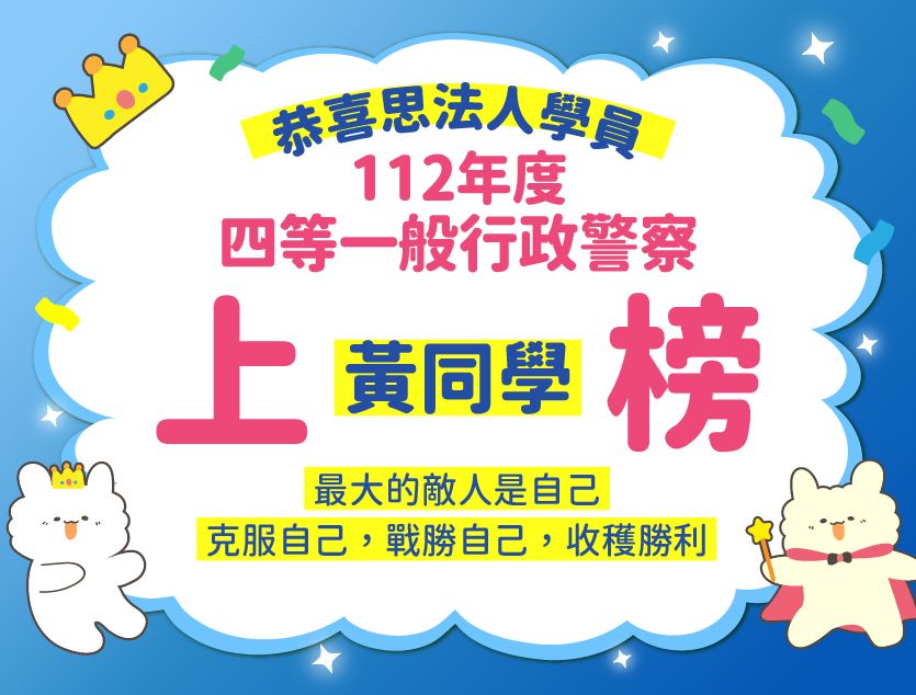從網路得知思法人,雖然思法人才創立第四年,比起其他老牌補習班可能略遜一籌,但我聽完Youtube的免費試聽課程,我發現不輸檯面上的老牌補習班,就選擇了思法人,因為我111年就有考過已經算熟悉了裡面的科目,因此我想針對我弱科目做加強,所以選擇雙科的方案。