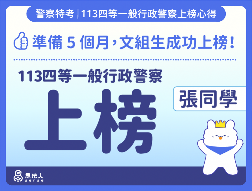準備 5 個月,文組生成功上榜!-113四等一般行政警察張同學心得