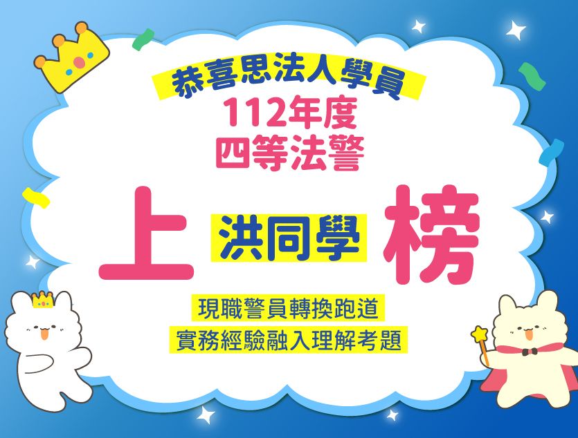 現職警員轉換跑道,實務經驗融入理解考題 – 112 年度四等法警洪同學考取心得