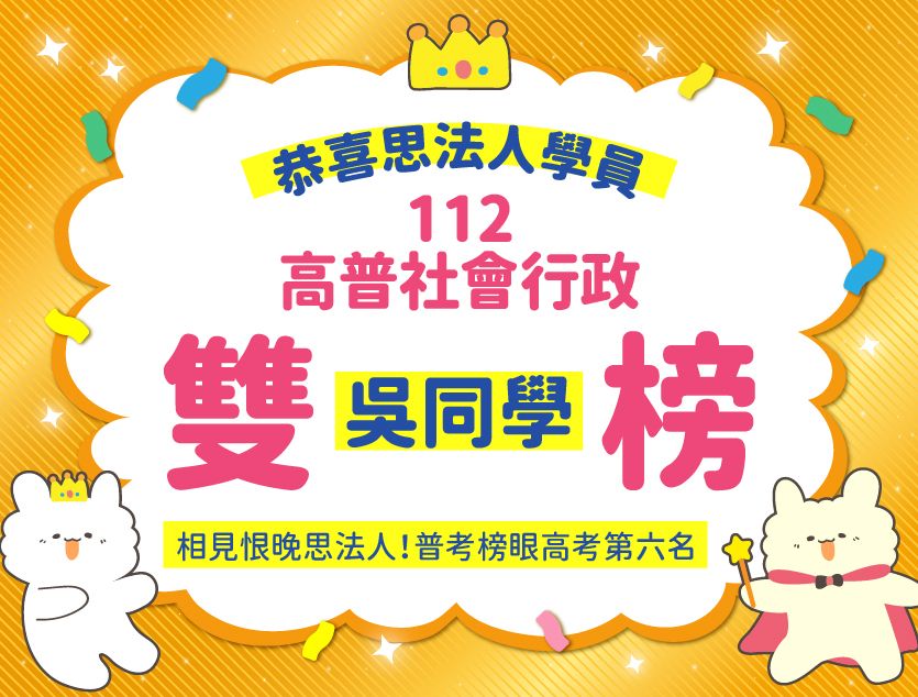 相見恨晚!普考榜眼+高考第六名-112高普社會行政雙榜-吳同學