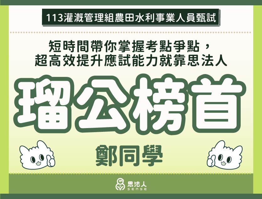 短時間帶你掌握考點爭點,超高效提升應試能力就靠思法人-113年度農田水利會灌溉管理組瑠公區榜首 鄭同學上榜心得分享