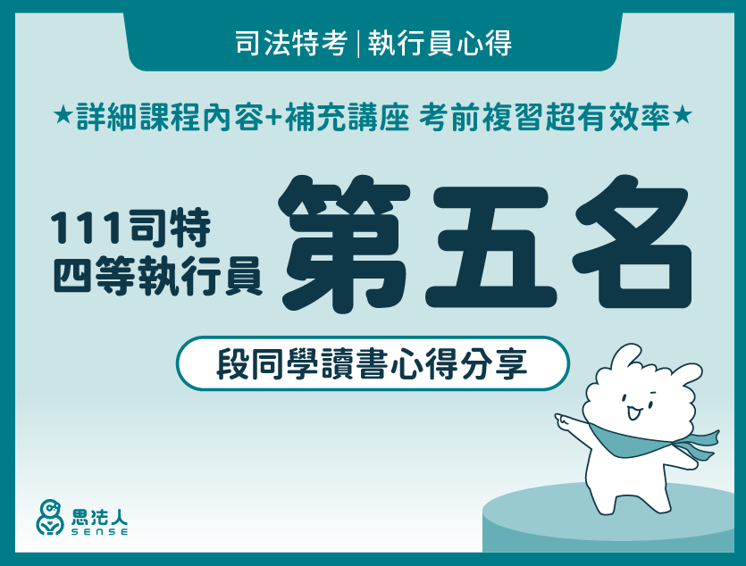 超仔細課程內容+補充講座,考前複習超有效率,111司特四等執行員第五名,段同學心得分享
