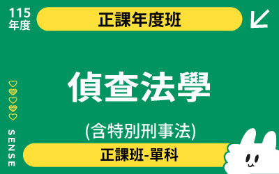 偵查法學課程包含以下: 刑法正課班 26+20堂 (總則紀綱+分則謝大維老師) 刑事訴訟法正課班 42堂 (紀綱老師) 特別刑事法正課班 10堂 (李瑜老師)