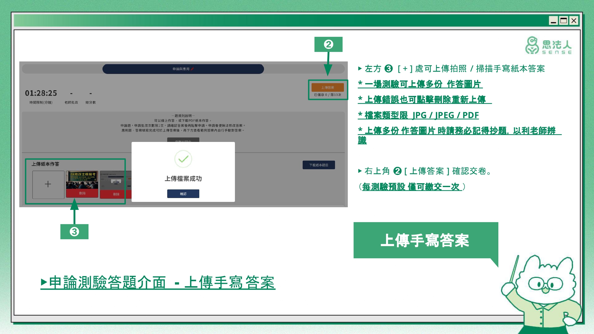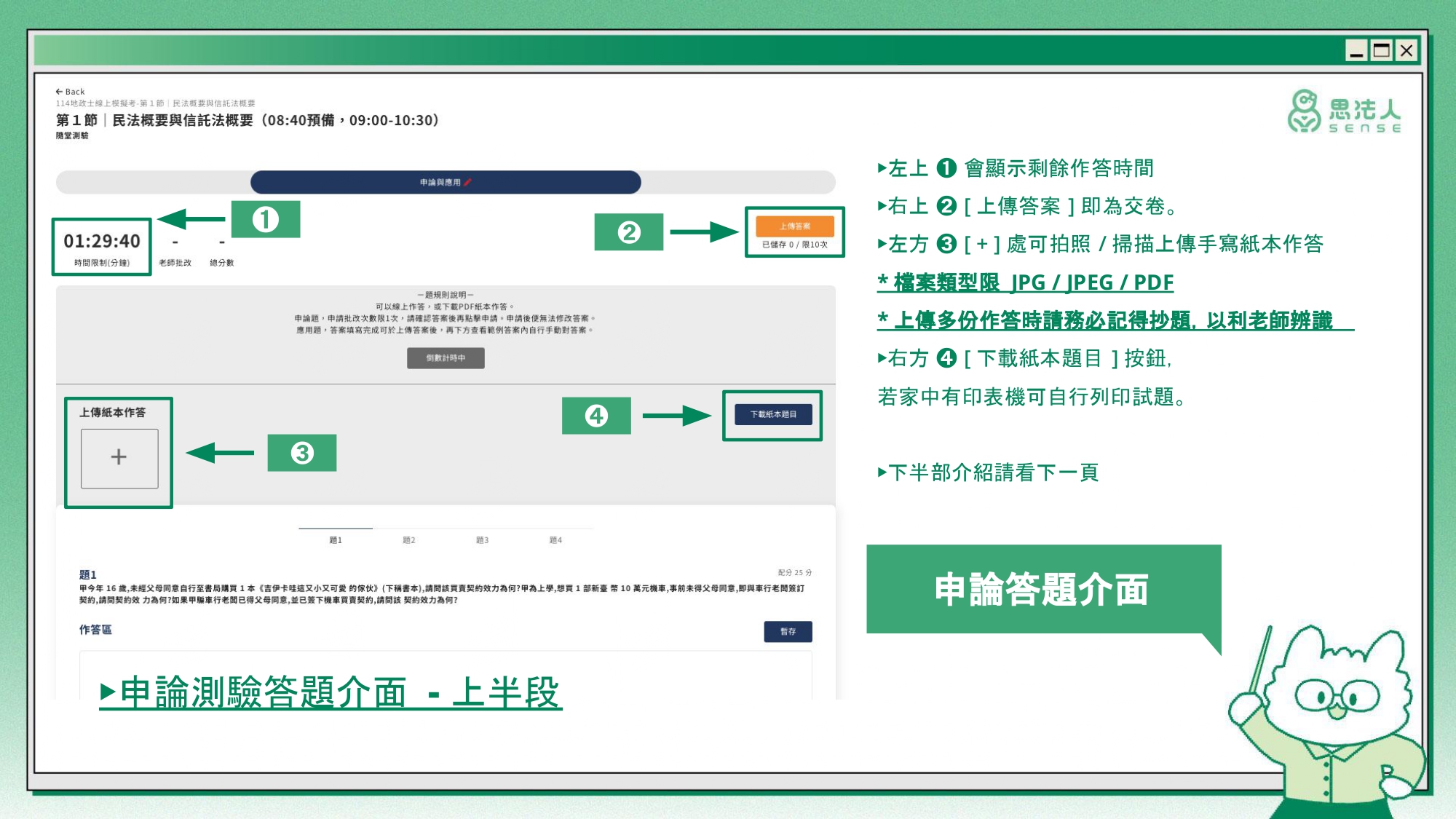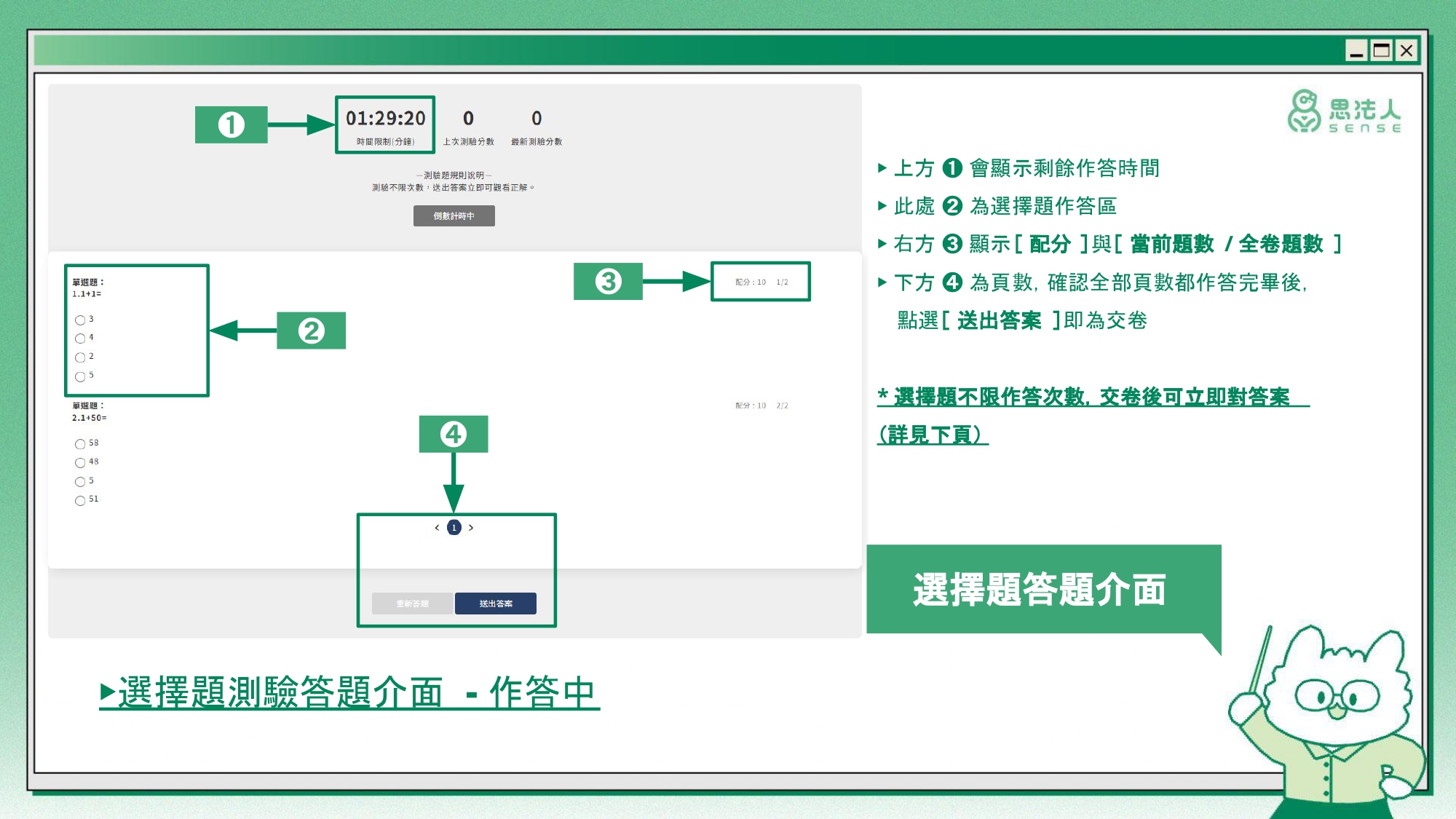 【線上題庫測驗】介面操作說明(注意!本賣場為不含批改賣場,故無法上傳答案,但可查看老師擬答與不限次數練習測驗題型)