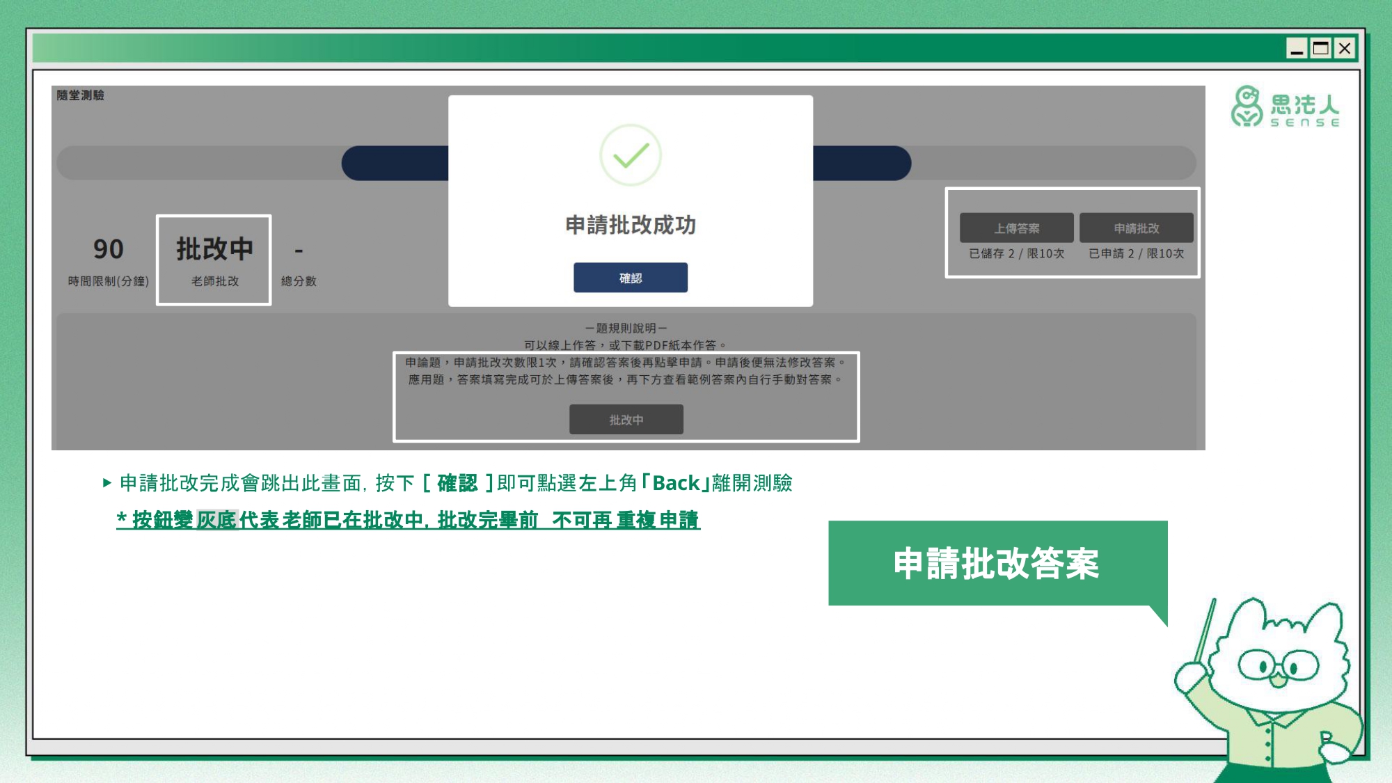 ・不含批改同學可練習測驗&查看系統擬答時間為 購買日起算 2 個月。