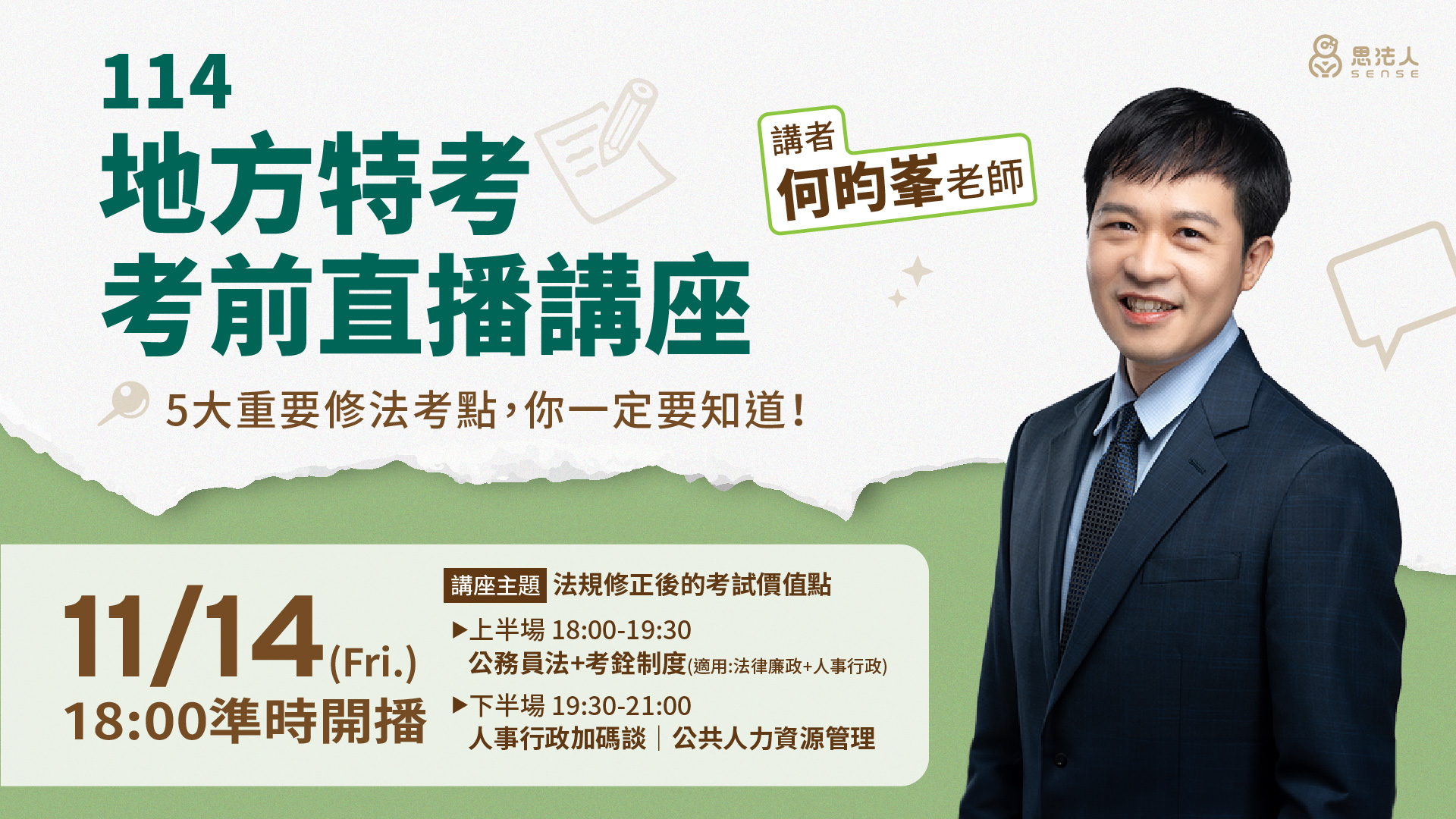 *思法人114年度、115年度人事行政、法律廉政正課班/題庫班/一二試總複習(套組/單雙科)學員免費,毋須重複購買。