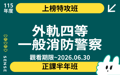 | 消防與災害防救法規 | 王堯 | (沿用114) | 約6堂 | 3題 | |||