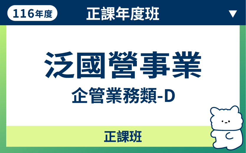【早鳥團報送總複習】116年度正課班-泛國營事業-企管業務類-D(觀課期-2027.11.30)【T】