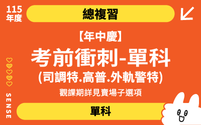 【年中慶】115年度總複習單科(司調特.高普.外軌警特)